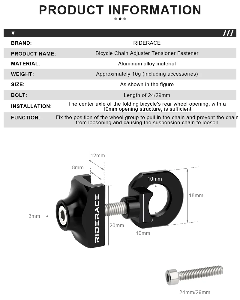 3. Applicability: The separable zipper adopts CNC technology, which is mainly used to adjust the chain tension of the folding bicycle.