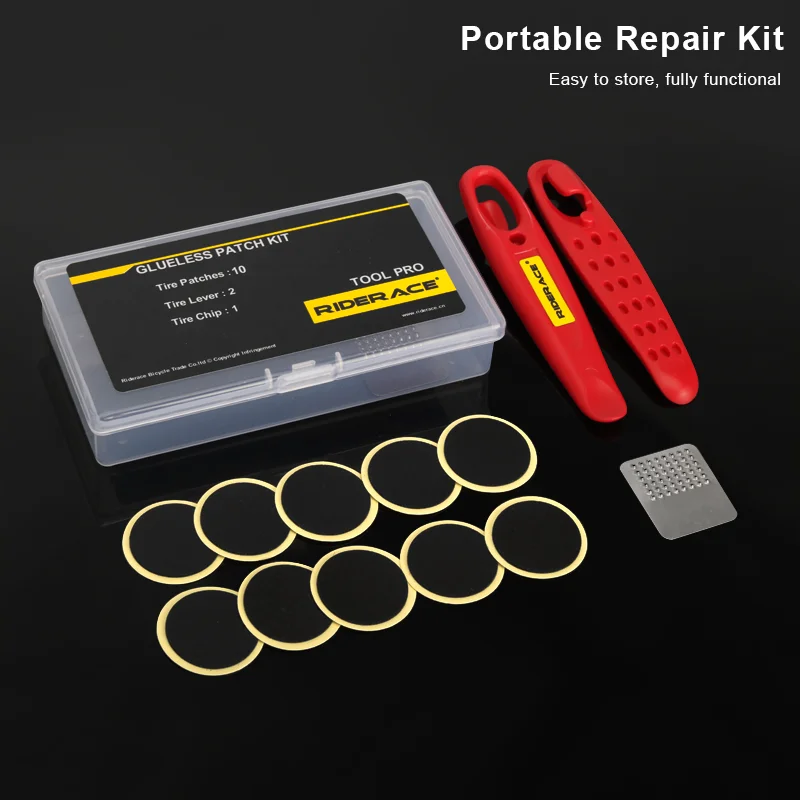 10 Pcs Bike Glueless Chip Patches Kit Tyre Tire Lever Wheel Repair Tool MTB Glue Free Cold Patch Sealant Fix Bicycle Accessories