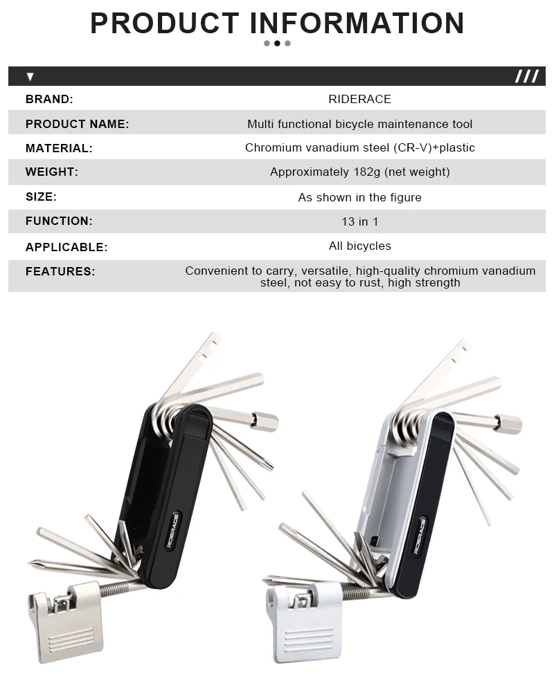 13 In 1 Bicycle Multi Tools Chain Splitter Cutter Hex Spoke Wrench Screwdriver Tyre Lever Tool Kit Portable Bike Repair Tools
