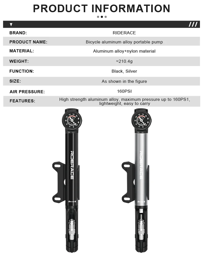 160PSI Bike Pump With Gauge Aluminium Alloy CNC Bicycle Hand Tire Air Inflator Schrader Presta Valve AV FV Cycling Accessories
