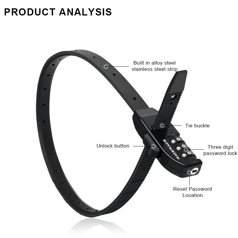 3-Digit Password Helmet Lock Multipurpose Bicycle Lock Zip Tie Modifiable Password Anti-Theft Steel Password Lock Cable Tie