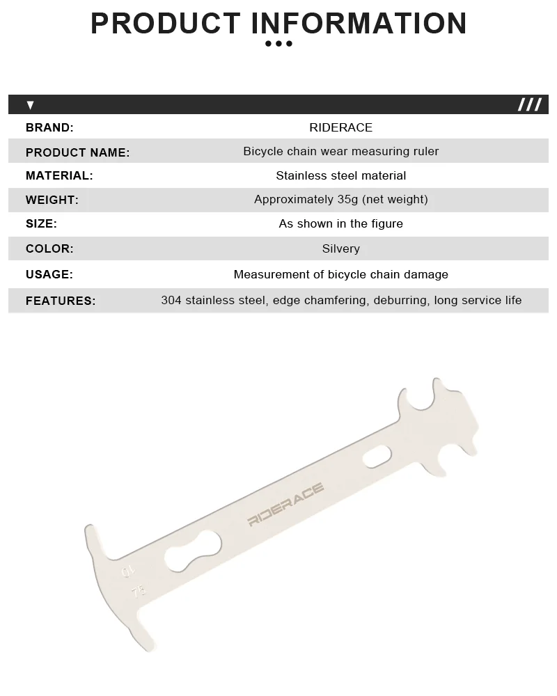 1.Accurate Wear Indicator :This bicycle chain wear indicator checker is a reliable tool that accurately measures the wear and tear on your bike chain, ensuring optimal performance and longevity.