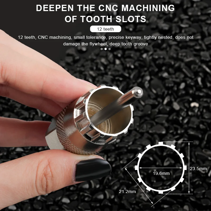 ▶Cassette Sprocket Sleeve:Featuring a 12-tooth design with CNC precision machining and tight tolerances, this cassette flywheel sprocket remover ensures an accurate fit and deep engagement with the flywheel, providing a secure grip without damaging the delicate components.