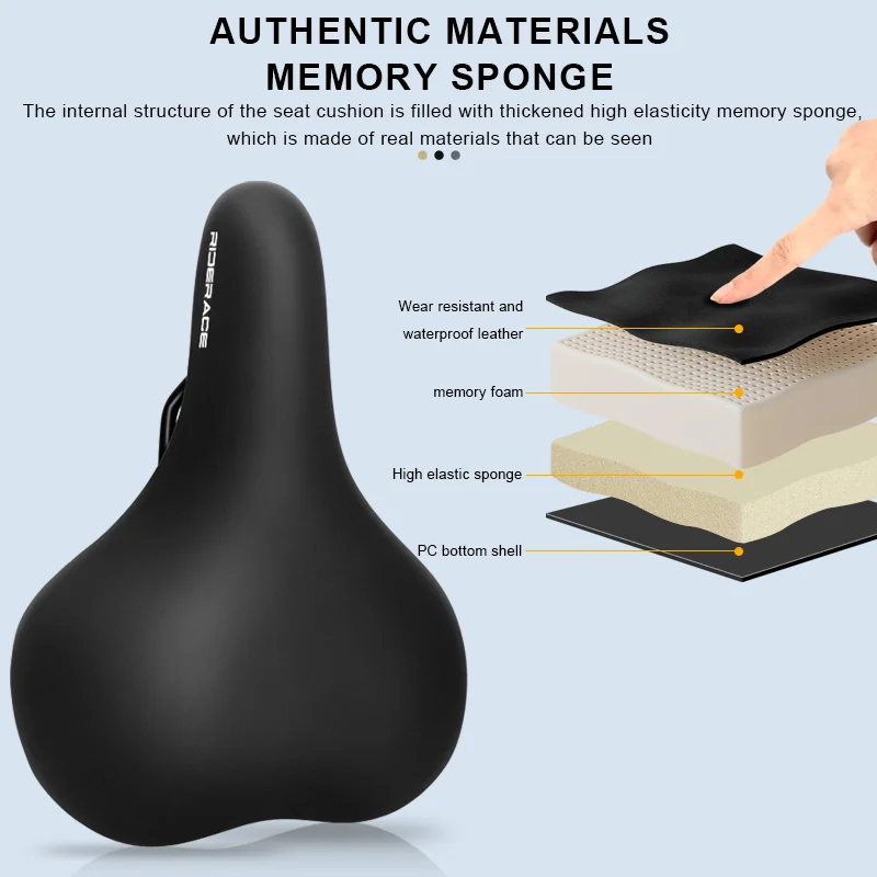 Bicycle Saddle Widen Thicken Ergonomic Soft MTB Mountain Road Bike Seat Shock Absorbing Comfortable Pu Leather Cycling Cushion