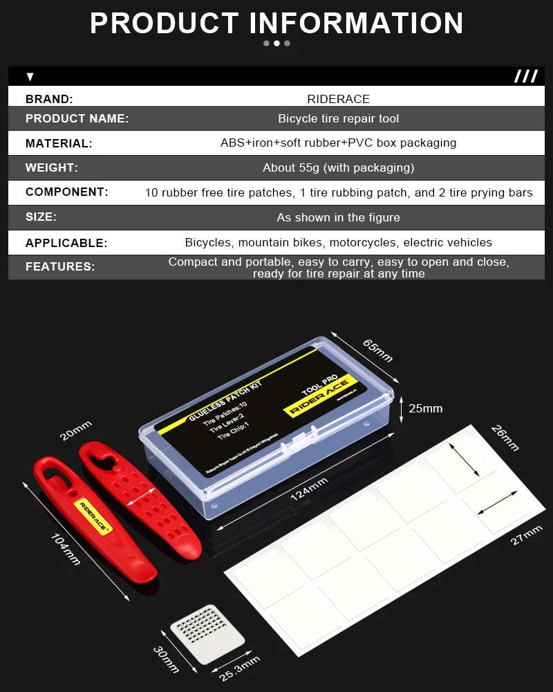 Bicycle Tire Patch Repair Tool Kit Glueless Chip Patches Mountain Road Bike Tire Repair Piece Tyre Tire Lever Wheel Repair Tool