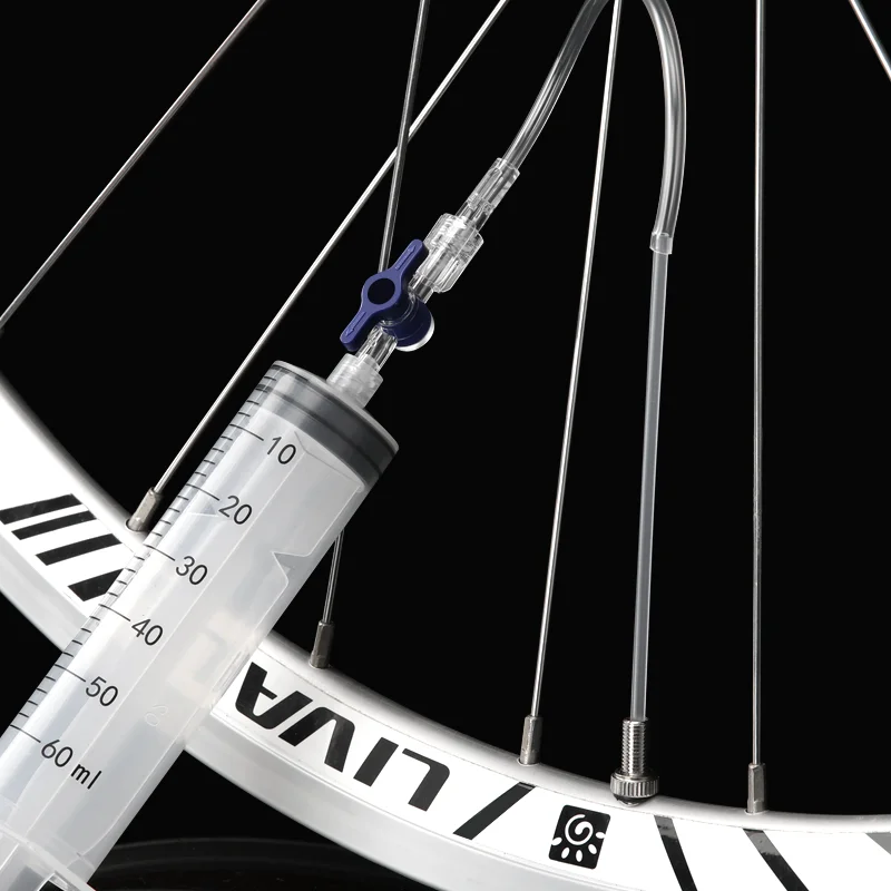 Bicycle Tubeless Tyre Sealant Injector Injection Tool Schrader Presta Valve Core Removal Tool 60ml Syringe Rubber Hose Kit