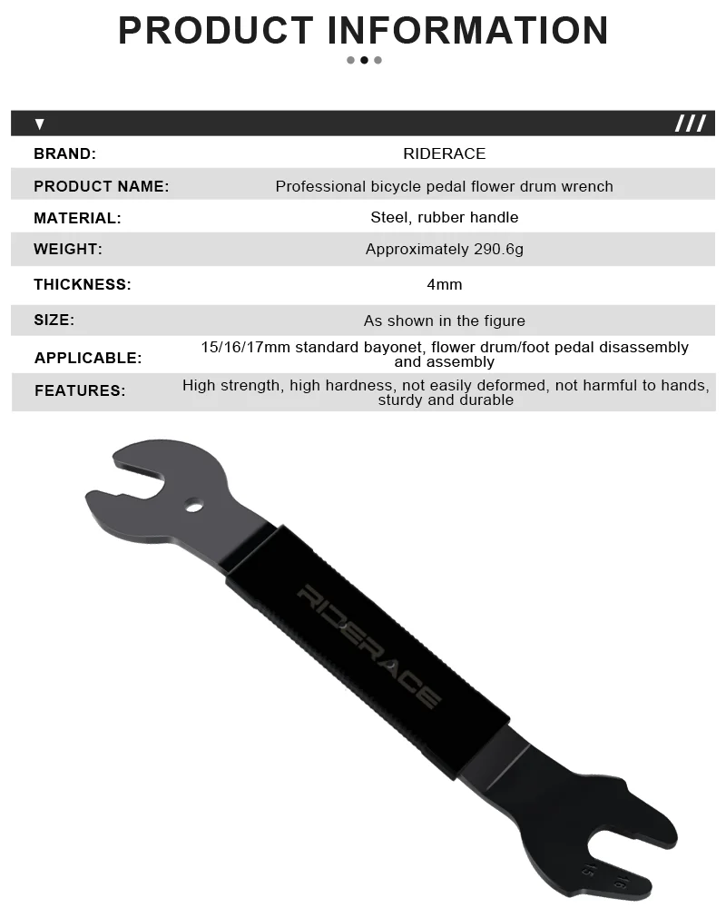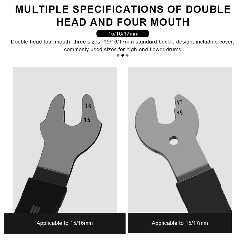 2. Both ends open, a variety of specifications, hub wrench compatible with 15-16mm, pedal wrench compatible with 15-17mm, suitable for most of the folding bicycle road bike mountain bike.