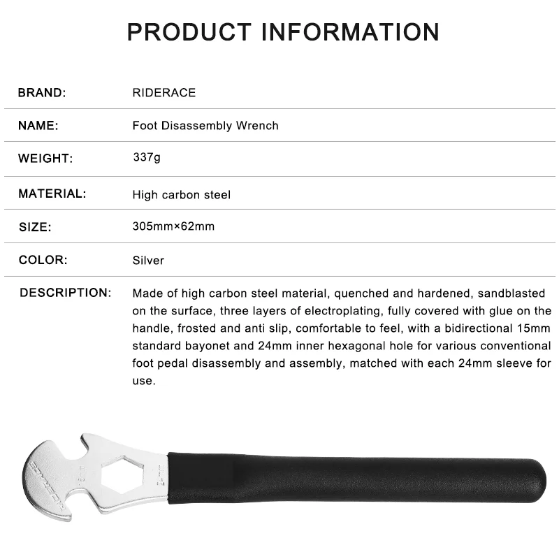 Bike Pedal Wrench 15mm 24mm Extra Long Handle Sturdy Durable Bicycle Pedals Install Remover Repair Spanner Cycling Repair Tool