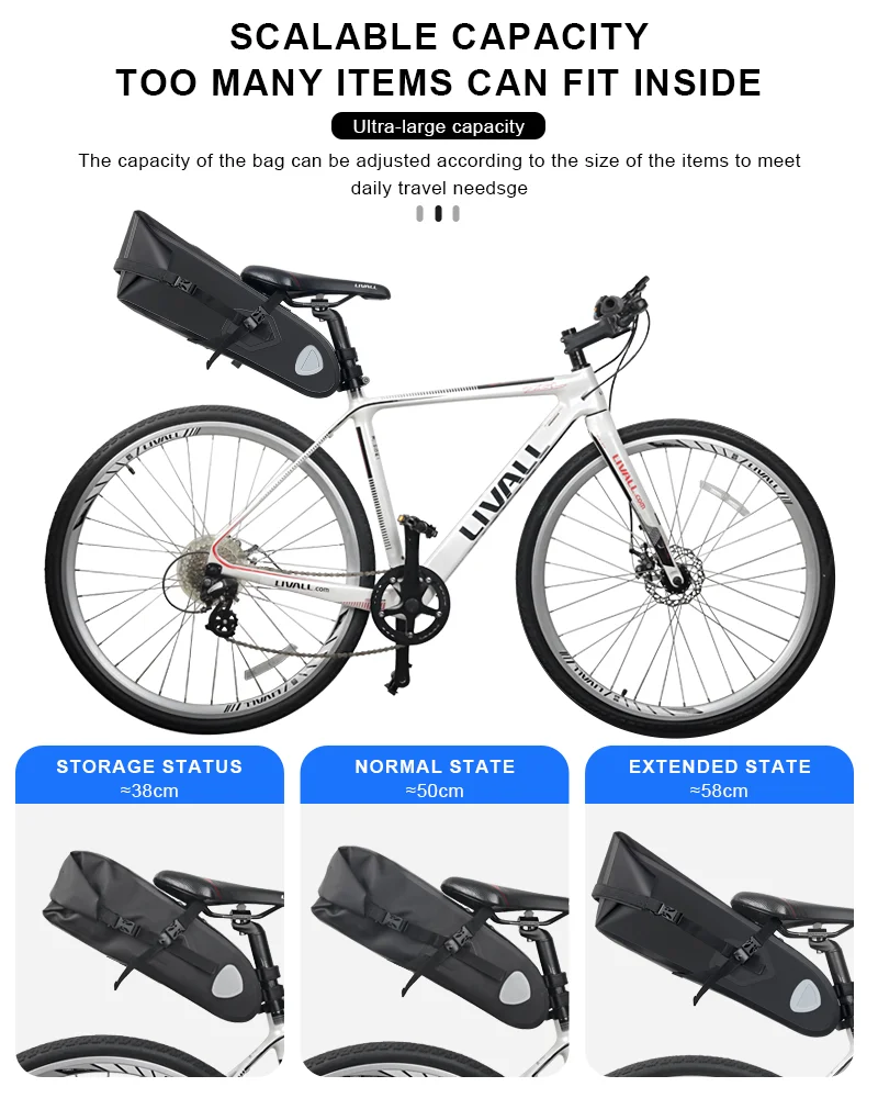 2.This is a large capacity seat bag designed specifically for motorcycle and bicycle riding.
