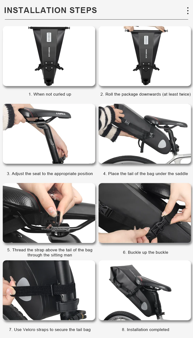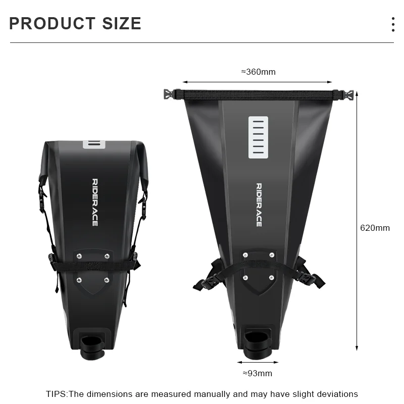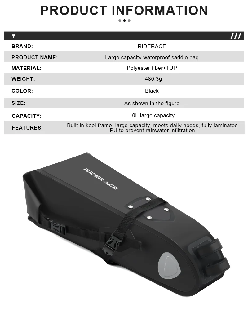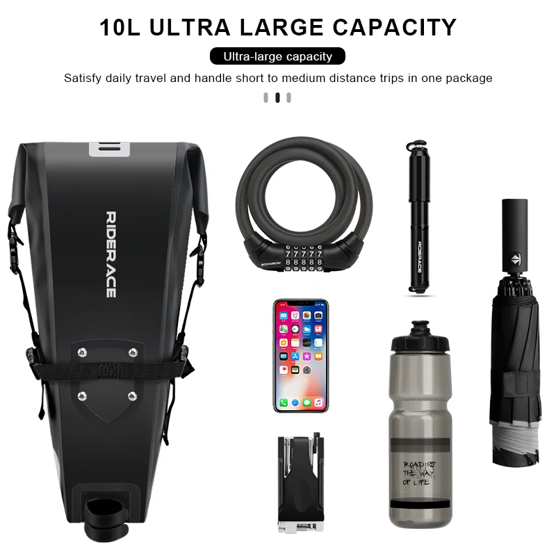 1.Adventures are easy to arrange. All you need to do is pack up your equipment, ride your bike, and ride along that epic path. There is nothing more adventurous than RIDERACE's large capacity bicycle tail bag.