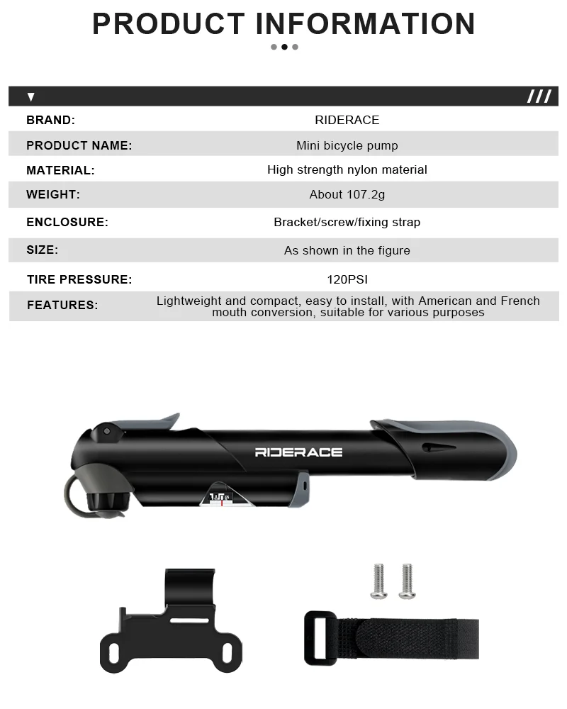 4.Durable: Made from high-quality ABS material, this small bike pump is durable and wear-resistant, capable of withstanding frequent use and extended inflation operations.It offers a long service life, providing reliable performance for an extended period.
